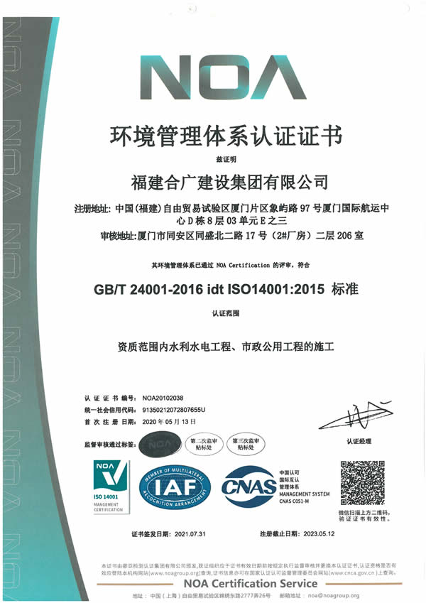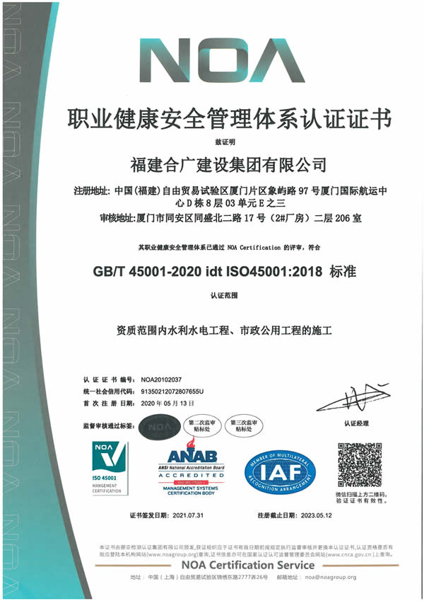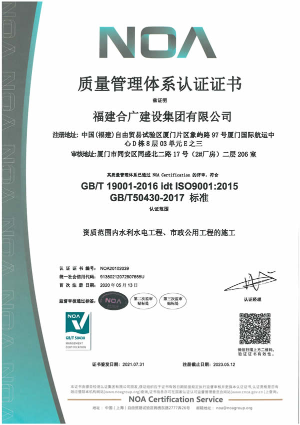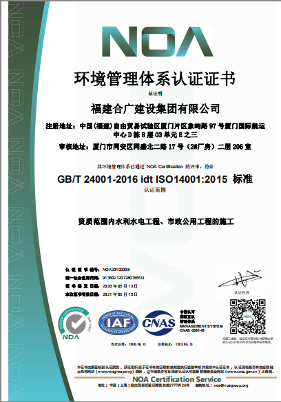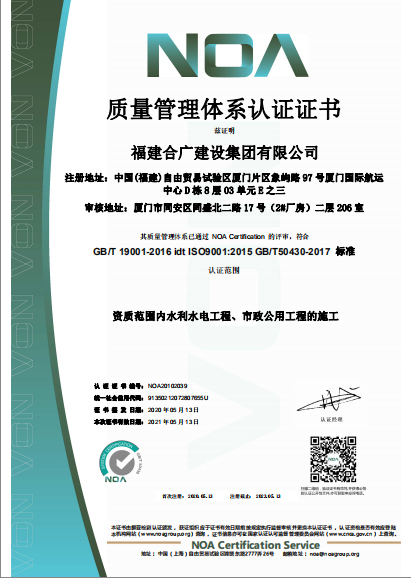福建合廣建設(shè)集團(tuán)有限公司,注冊(cè)資本5188萬元人民幣,公司位于廈門市同安區(qū)鳳山一里151-17號(hào)。本公司成立于2013年,公司具備市政公用工程、水利水電工程、房屋建筑工程、公路工程、園林綠化等多專業(yè)施工資質(zhì)。企業(yè)從業(yè)人員100多人,各類專業(yè)技術(shù)人員70多人,其中高級(jí)職稱8人,中級(jí)職稱40多人,一級(jí)建造師6人,二級(jí)建造師15多人。
